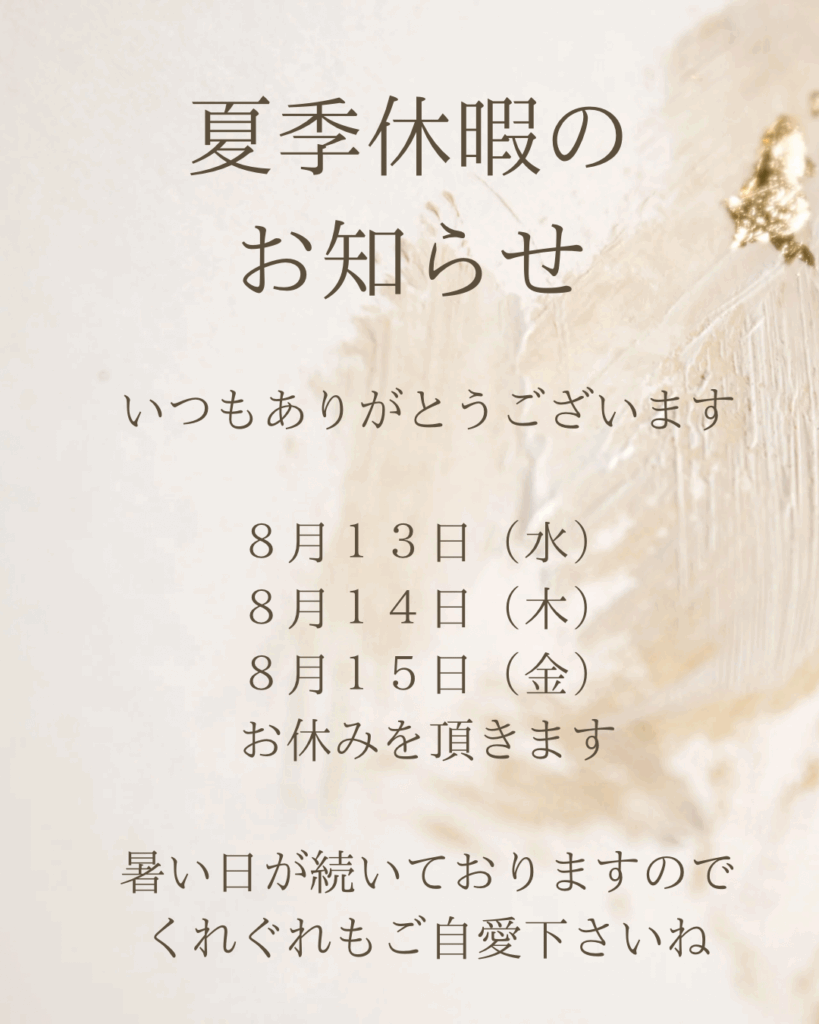 TSUMUGU.hair designのブログをご覧頂きありがとうございます。 誠の勝手ながら、8月13日(水)から8月15日(金)まで、夏季休暇を頂きます。 …